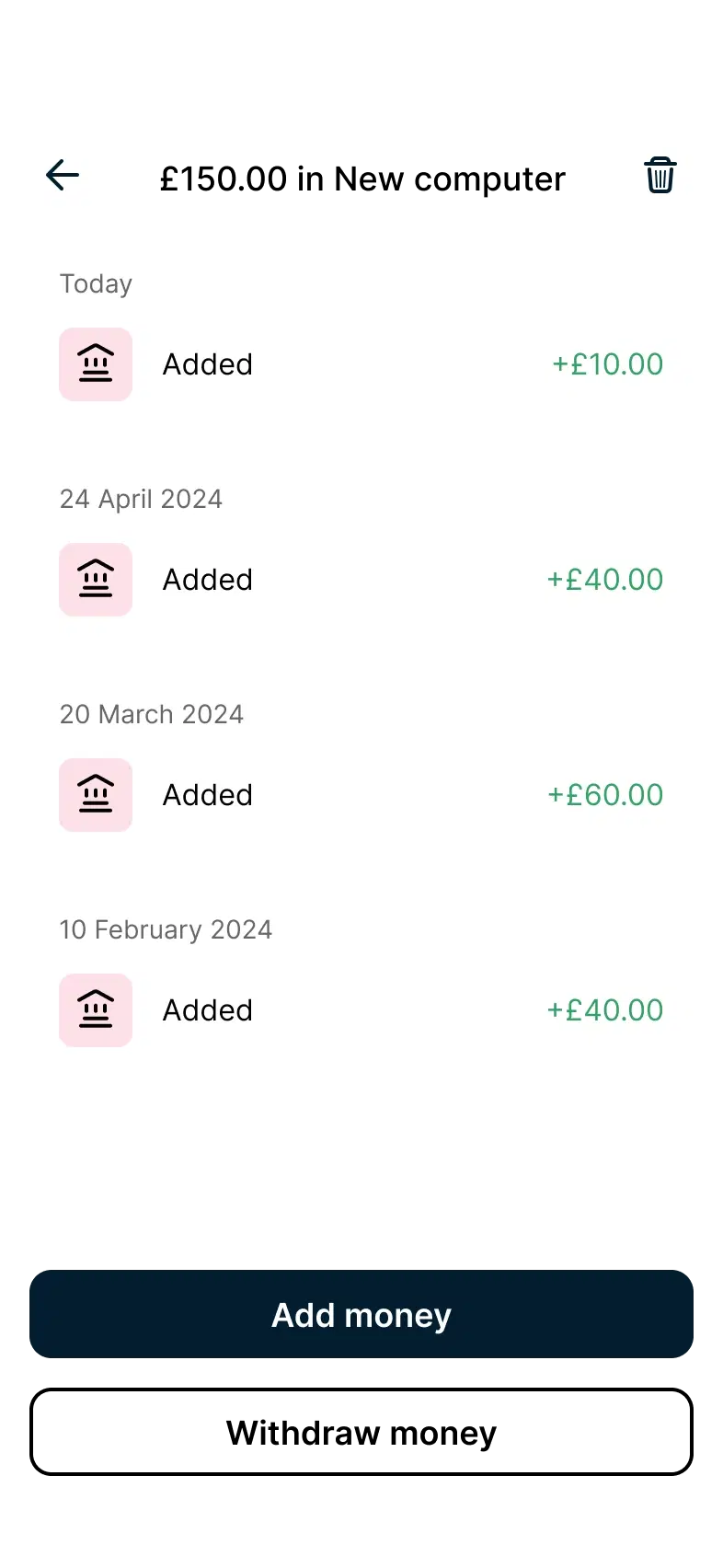 A Pot is a place where you can separate money from your main account to keep it safe or to save for specific goals.